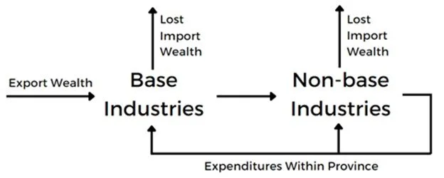 As pictured above in Figure 1, money or wealth only enters the cycle through exports and only leaves through import leakages. Import leakages refer to wealth that leaves the province due to importing goods and services. With this model in mind, two ways to grow the economy would be to increase exports relative to imports or increase the retention of export wealth within the province.